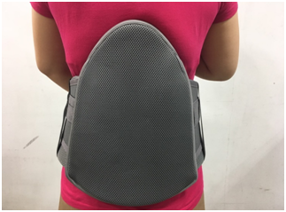 胸腰椎疼痛時暫時性的照護。其應用原理是增加腹內壓,限制會造成疼痛的動作,並把壓力分散到盡可能大的表面區域上,內側含有雙翼。