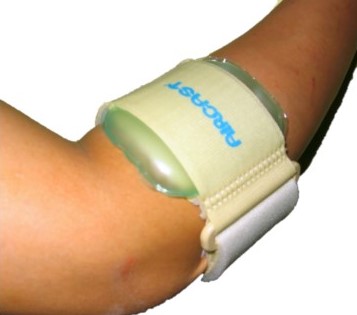 運動或活動時穿戴,可提供前臂肌腱舒適保護。適用於棒球、排球、網球、羽毛球、高爾夫球、以及一般需要用到手肘兩側肌肉與肌腱之活動。